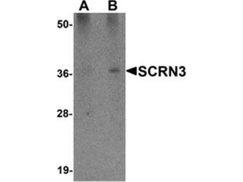 - This antibody detects SCRN3. This antibody is predicted to not cross-react with other SCRN members. At least four isoforms of SCRN3 are known to exist, this antibody will recognize all four.