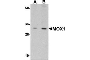- MOX1, also known as MEOX1, is a member of a subfamily of non-clustered, diverged, antennapedia-like homeobox-containing genes that is first expressed during gastrulation in the early mesoderm and later in presomitic mesoderm, early somites, dermomyotome and sclerotome. Both MOX1 and the related protein MOX2 are required for proper gene expression in all somitic compartments. MOX1 is an upstream regulator of the transcription factors Bapx1, Tbx18, and Uncx and is thus part of a regulatory circuit that functions in the maintenance of rostrocaudal sclerotome polarity and axial skeleton formation.Synonyms: Homeobox protein MOX-1, MOX1