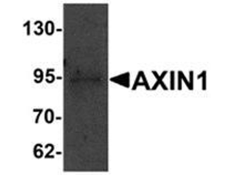 AXIN1 is a cytoplasmic protein which contains a regulation of G-protein signaling (RGS) domain and a dishevelled and axin (DIX) domain and is thought to function as a negative regulator of the WNT signaling pathway that regulates embryonic axis formation. AXIN1 interacts with adenomatosis polyposis coli (APC), b-catenin, glycogen synthase kinase 3 beta, forming a tetrameric complex resulting in the regulation of the stabilization of b-catenin. Mutations in the AXIN1 gene have been associated various carcinomas, indicating that it also functions as a tumor suppressor.Synonyms: AXIN, AXIN1, Axis inhibition protein 1