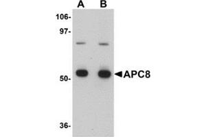 Cell cycle regulated protein ubiquitination and degradation within subcellular domains is thought to be essential for the normal progression of mitosis. APC8 is a highly conserved component of the anaphase promoting complex/cyclosome (APC/C), a cell cycle-regulated E3 ubiquitin ligase that controls progression through mitosis and the G1 phase of the cell cycle. APC/C is responsible for degrading anaphase inhibitors, mitotic cyclins, and spindle-associated proteins ensuring that events of mitosis take place in proper sequence. The individual APC/C components mRNA and protein levels are expressed at approximately the same levels in most tissues and cell lines, suggesting that they perform their functions as part of a complex. In Drosophila, silencing of APC8 results in developmental delay and pupal lethality with elevated levels of apoptosis, high mitotic index, and delayed or blocked mitosis.Synonyms: ANAPC8, Anaphase-promoting complex subunit 8, Cell division cycle protein 23 homolog, Cyclosome subunit 8