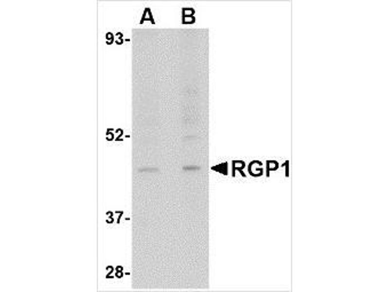 The Rabbit Polyclonal anti-RGP1 antibody (ABIN783828) specifically detects RGP1 in WB and EIA.