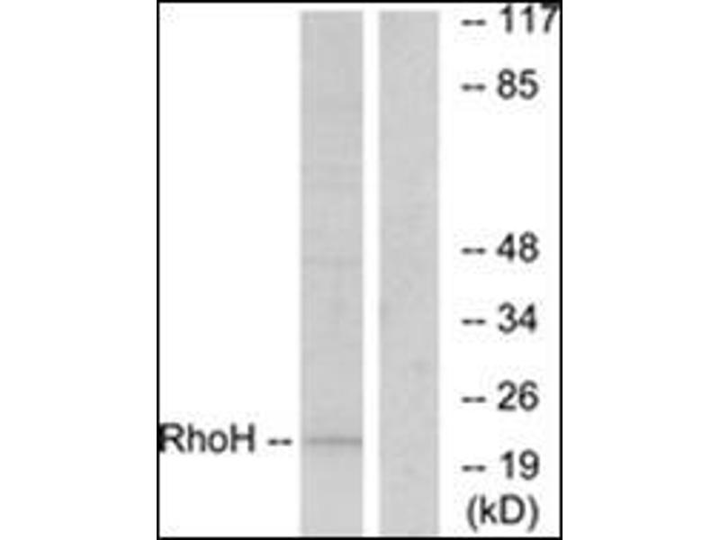 The Rho subfamily of small GTP-binding proteins mediates many fundamental cellular functions. The commonly studied members (Rho, Rac, and CDC42) regulate actin reorganization and affect diverse cellular responses, including adhesion, cytokinesis, and motility. RhoH, also known as TTF (Translocation Three Four), Rho-related GTP-binding protein and ras homolog gene family member H, is unlike most other small G proteins. Most small G proteins are expressed ubiquitously, however, Rho H is expressed only in hemopoietic cells and tissues. Translocations and a high frequency of Rho H mutation have been detected in primary lymphoma cells. Rho H expression has also been observed in activated neutrophils. RhoH is GTPase deficient, remaining in a GTP-bound activated state without cycling. Rho H may be involved in the functional differentiation of T cells and in cytoskeleton organization. The RhoH/TTF (ARHH) gene maps to chromosome 4p13 and encodes a 191 -amino acid polypeptide.Synonyms: ARHH, GTP-binding protein TTF, Rho-related GTP-binding protein RhoH, TTF, Translocation three four protein