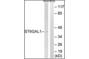 The Rabbit Polyclonal anti-ST6GAL1 antibody (ABIN784587) specifically detects ST6GAL1 in WB, IHC (p) and EIA.