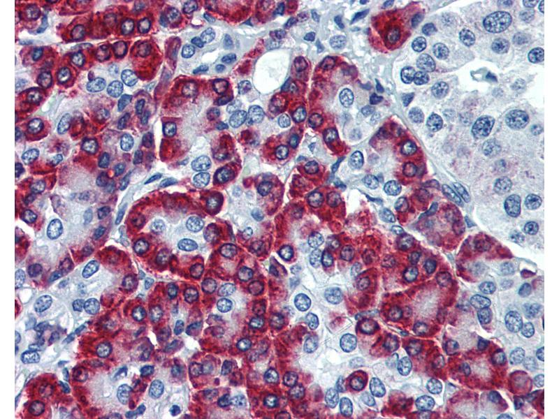 Usage: Immunohistochemistry: Formalin-fixed paraffin-embedded sections. Sandwich ELISA: Recombinant protein. Western Blot using transfected cell lysates, cell line lysates and the recombinant protein used as the immunogen. -