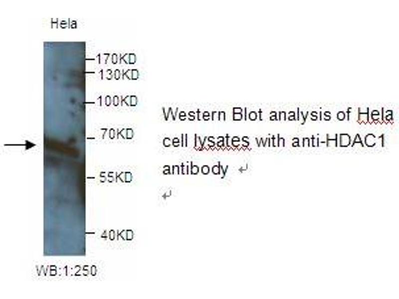 - HDAC1 antibody detects endogenous levels of HDAC1 protein. Not tested with other proteins.