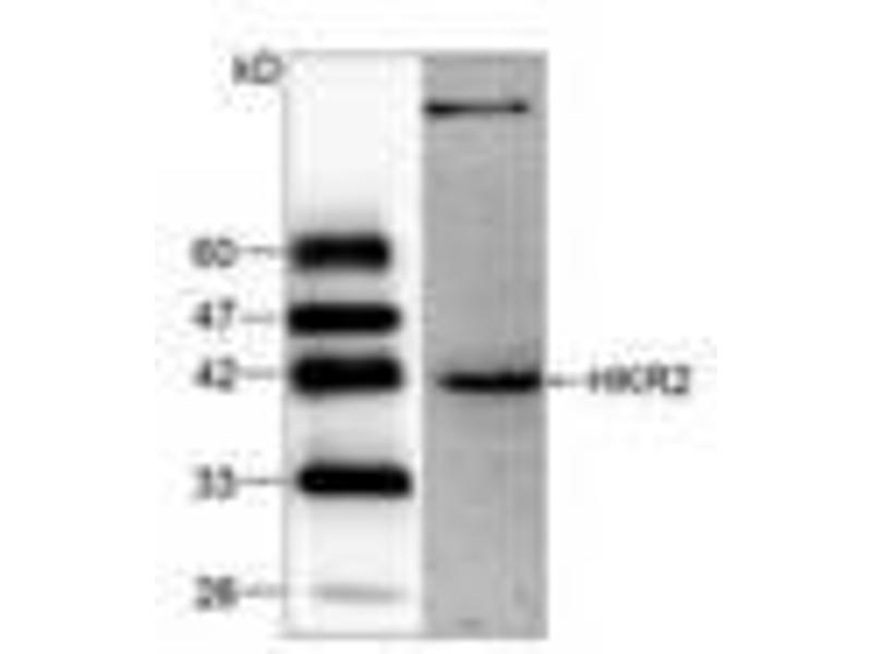 - Anti-HKR2 recognizes HKR2 expression in HepG2 whole cell lysate.