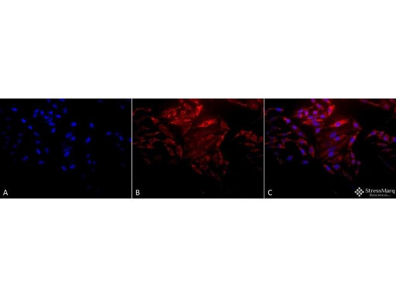 1 μg/ml of ABIN863185 was sufficient for detection of HSP60 in 20 μg of heat shocked HeLa cell lysate by colorimetric immunoblot analysis using goat anti-mouse IgG as the secondary antibody.