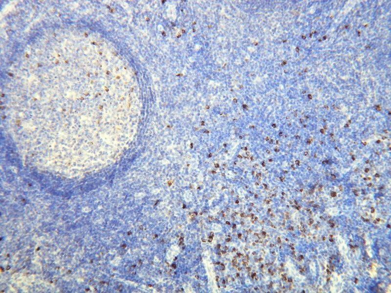 Antibody targeting the Lambda Light Chains of human IgG in IHC-P application, mostly used in diagnostics of B-cell related malignancies, where the levels of this protein are highly elevated. The antibody works perfectly in bone marrow tissue.