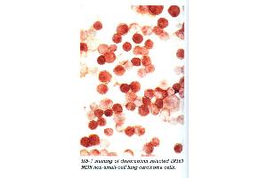JSB-1 reacts with a conserved cytoplasmic epitope of the human plasma membrane- associated 170-180 kDa glycoprotein, the expression of which is strongly correlated with the degree of multidrug resistance (MDR) derived MDR cell lines and human MDR cell lines, including cell lines derived from lung, ovaries and B cell lymphomas.