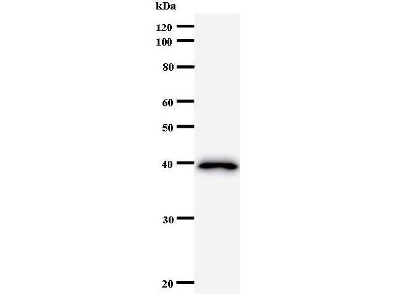 This gene was identified by the reactivity of its encoded protein to a monoclonal antibody prepared against brain homogenates from patients with Alzheimer's disease. Analysis of the original protein (fetal Alz-50 reactive clone 1, or FAC1), identified as an 810 aa protein containing a DNA-binding domain and a zinc finger motif, suggested it might play a role in the regulation of transcription. High levels of FAC1 were detected in fetal brain and in patients with neurodegenerative diseases. The protein encoded by this gene is actually much larger than originally thought, and it also contains a C-terminal bromodomain characteristic of proteins that regulate transcription during proliferation. Synonyms: Monoclonal FALZ antibody, Anti-FALZ antibody, Bromodomain PHD finger transcription factor antibody, BPTF antibody, FAC1 antibody, NURF301 antibody.