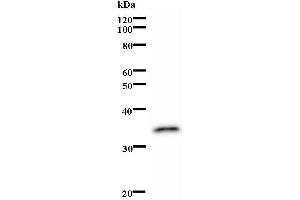 THRA antibody in PBS (3.0 mM KCl, 1.5 mM KH2 PO4 , 140 mM NaCl, 8.0 mM Na2 HPO4 (pH 7.4)) containing 1 % bovine serum albumin (BSA) and 0.05 % sodium azide (NaN3 ).