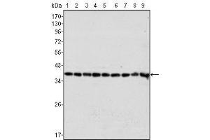 This Mouse Monoclonal antibody specifically detects GAPDH in WB, IHC, ELISA and IF. It exhibits reactivity toward Human. It has been mentioned in 6+ publications