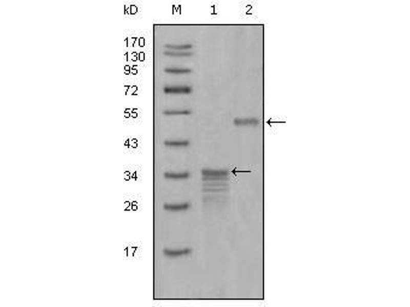 ELISA: 1:10,000, WB: 1:500-1:2000 Optimal conditions should be determined by the investigator.
