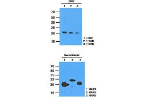 - RAS antibody was raised in mouse using recombinant human NRAS (1-186aa) purified from E. coli as the immunogen.