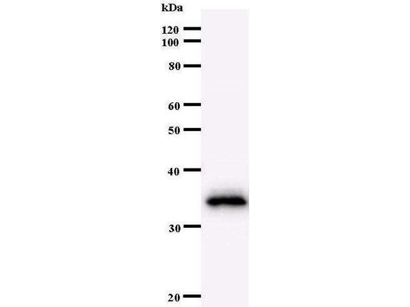 Protein max is a member of the basic helix-loop-helix leucine zipper (bHLHZ) family of transcription factors. It is able to form homodimers and heterodimers with other family members, which include Mad, Mxl1 and Myc. Myc is an oncoprotein implicated in cell proliferation, differentiation and apoptosis. The homodimers and heterodimers compete for a common DNA target site (the E-box) and rearrangement among these dimer forms provides a complex system of transcriptional regulation. Multiple alternatively spliced transcript variants have been described for this gene but the full-length nature for some of them is unknown. Synonyms: Monoclonal MAX antibody, Anti-MAX antibody, MYC associated factor X antibody.