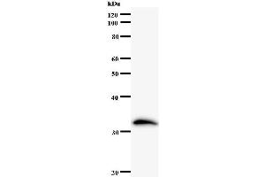 ZNF38 antibody in PBS (3.0 mM KCl, 1.5 mM KH2 PO4 , 140 mM NaCl, 8.0 mM Na2 HPO4 (pH 7.4)) containing 1 % bovine serum albumin (BSA) and 0.05 % sodium azide (NaN3 ).