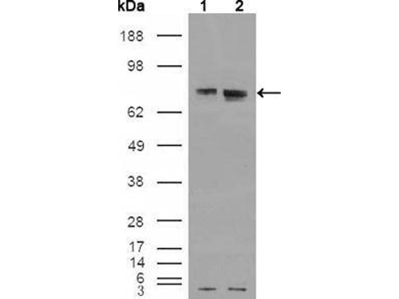 Estrogen receptor refers to a group of receptors that are activated by the hormone estrogen. Two types of estrogen receptor exist: ER, which is a member of the nuclear hormone family of intracellular receptors, and the estrogen G protein-coupled receptor GPR30 (GPER), which is a G protein-coupled receptor. The main function of the estrogen receptor is as a DNA-binding transcription factor that regulates gene expression. However, the estrogen receptor has additional functions independent of DNA binding. Synonyms: Monoclonal Estrogen Receptor 1 antibody, Anti-Estrogen Receptor 1 antibody, DKFZp686N23123 antibody, ER antibody, ESR antibody, ESRA antibody, Era antibody, NR3A1 antibody, ESR1 antibody.