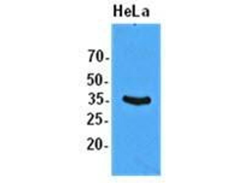 Each investigation should be titrated by the reagent to obtain optimal results. Recommended dilution range for Western blot analysis is 1:1,000.