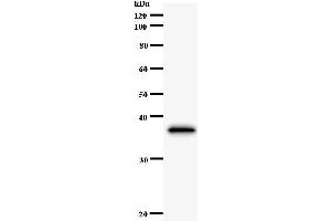 - CBLB antibody in PBS (3.0 mM KCl, 1.5 mM KH2 PO4 , 140 mM NaCl, 8.0 mM Na2 HPO4 (pH 7.4)) containing 1 % bovine serum albumin (BSA) and 0.05 % sodium azide (NaN3 ).