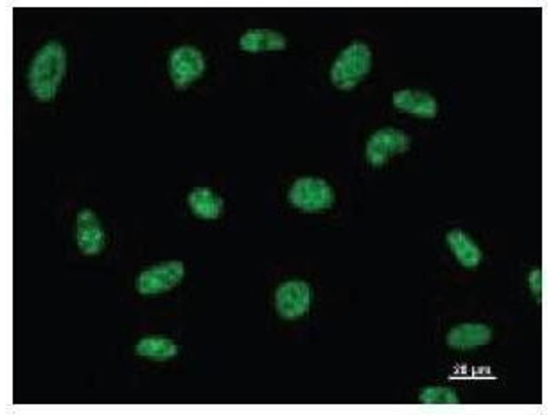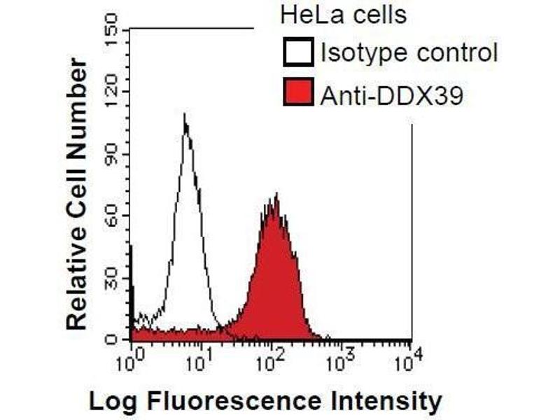 This gene encodes a member of the DEAD box protein family. These proteins are characterized by the conserved motif Asp- Glu-Ala-Asp (DEAD) and are putative RNA helicases. They are implicated in a number of cellular processes involving alteration of RNA secondary structure, such as translation initiation, nuclear and mitochondrial splicing, and ribosome and spliceosome assembly. Based on their distribution patterns, some members of the DEAD box protein family are believed to be involved in embryogenesis, spermatogenesis, and cellular growth and division. Synonyms: Monoclonal DDX39 antibody, Anti-DDX39 antibody, DEAD (Asp-Glu-Ala-Asp) box polypeptide 39 antibody, BAT1 antibody, DDXL antibody, URH49 antibody, MGC8417 antibody, MGC18203 antibody.