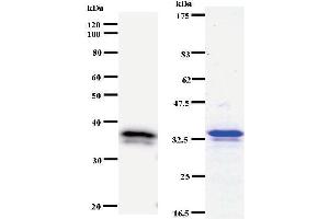 - DHX38 antibody in PBS (3.0 mM KCl, 1.5 mM KH2 PO4 , 140 mM NaCl, 8.0 mM Na2 HPO4 (pH 7.4)) containing 1 % bovine serum albumin (BSA) and 0.05 % sodium azide (NaN3 ).