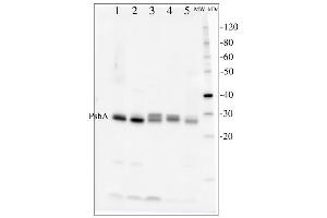 - KLH-conjugated synthetic peptide derived from available plant, algal and cyanobacterial PsbA sequences, including Arabidopsis thaliana UniProt: A4QJR4, TAIR: AtCg00020 , Oryza sativa P0C434, Populus alba Q14FH6, Physcomitrella patens Q6YXN7, Chlamydomonas reinhardtii P07753, Synechocystis sp. P14660 and many others