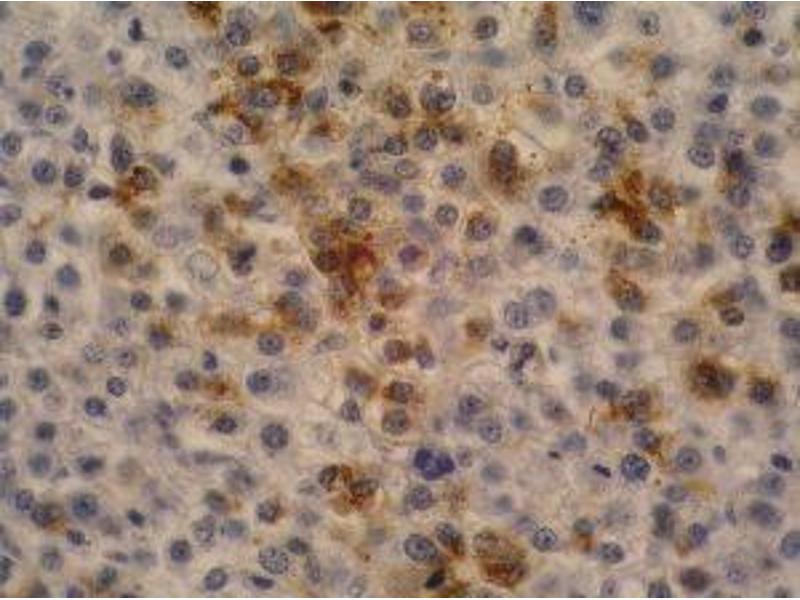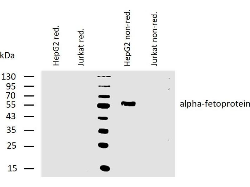 ELISA: The antibody AFP-11 has been tested as the capture antibody in a sandwich ELISA for analysis of human alpha-fetoprotein in combination with antibody AFP-01 (cat. no. 11-259-C100). Immunohistochemistry (paraffin sections): Recommended dilution: 10 μg/mL, positive tissue: hepatocellular carcinoma, heat mediated antigen retrieval (sodium citrate buffer), mAb incubation 1 hour / RT, detection DAB. Western blotting: Recommended dilution: 2 μg/mL, non-reducing conditions.