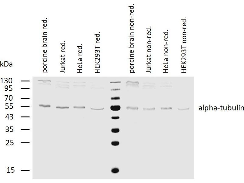 - The antibody TU-16 reacts with alpha-tubulin of all tested species, under denaturing and non-denaturing conditions.