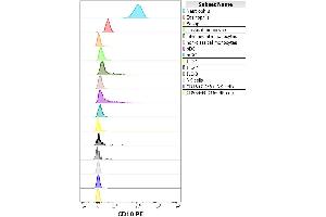 Purified antibody is conjugated with R-phycoerythrin (PE) under optimum conditions. Unconjugated antibody and free fluorochrome are removed by size-exclusion chromatography.