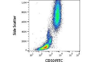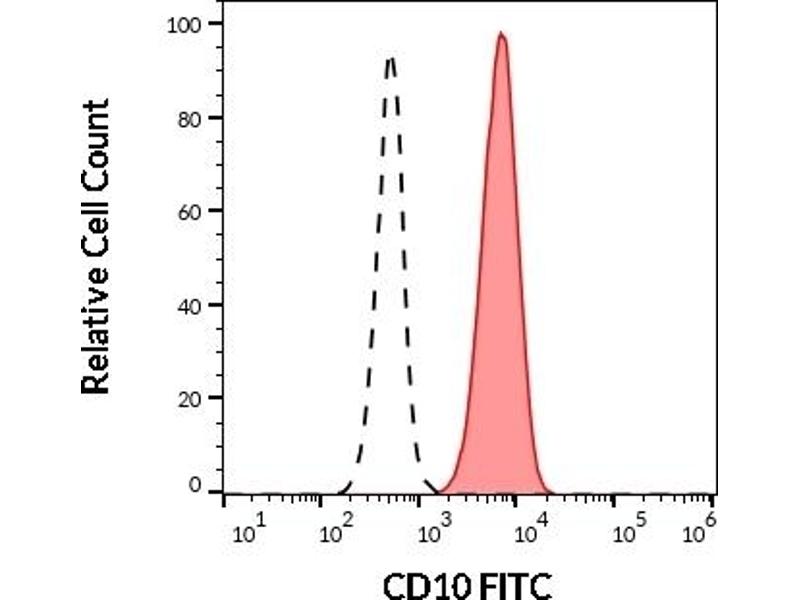 Membrane metalloendopeptidase,CD10 (neutral endopeptidase –, NEP, common acute lymphocytic leukemia antigen –, CALLA, membrane metallo-endopeptidase –, MME, enkefalinase) is a 100- kDa cell surface zinc metalloprotease, cleaving peptide bonds on the N-terminus of hydrophobic amino acids and inactivating multiple physiologically active peptids. CD10 is expressed on various normal cell types, including lymphoid precursor cells, germinal center B lymhocytes, and some epithelial cells, and its expression level serves as a marker for diagnostics of many carcinomas. CD10 is also a differentiation antigen for early B-lymphoid progenitors in the B-cell differentiation pathway and has a key role in regulation of growth, differentiation and signal transduction of many cellular systems.,CALLA, Neprilysin, Neutral endopeptidase, Enkephalinase, Atriopeptidase, MME