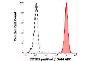 - Endoglin,CD105 (endoglin) is a homodimeric transmembrane glycoprotein serving in presence of TGFbetaR-2 as a receptor for TGFbeta-1 and TGFbeta-3. CD105 is highly expressed on endothelial cells and promotes angiogenesis during wound healing, infarcts and in a wide range of tumours and its gene expression is stimulated by hypoxia. CD105 prevents apoptosis in hypoxic endothelial cells and also antagonises the inhibitory effects of TGFbeta-1 on vascular endothelial cell growth and migration. Normal cellular levels of CD105 are required for formation of new blood vessels.,Endoglin, END, ENG, HHT1, ORW1