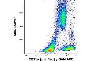 Integrin subunit alpha L,CD11a (LFA-1 alpha) together with CD18 constitute leukocyte function-associated antigen 1 (LFA-1), the alphaLbeta2 integrin. CD11a is implicated in activation of LFA-1 complex. LFA-1 is expressed on the plasma membrane of leukocytes in a low-affinity conformation. Cell stimulation by chemokines or other signals leads to induction the high-affinity conformation, which supports tight binding of LFA-1 to its ligands, the intercellular adhesion molecules ICAM-1, -2, -3. LFA-1 is thus involved in interaction of various immune cells and in their tissue-specific settlement, but participates also in control of cell differentiation and proliferation and of T-cell effector functions. Blocking of LFA-1 function by specific antibodies or small molecules has become an important therapeutic approach in treatment of multiple inflammatory diseases. For example, humanized anti-LFA-1 antibody Efalizumab (Raptiva) is being used to interfere with T cell migration to sites of inflammation, binding of cholesterol-lowering drug simvastatin to CD11a allosteric site leads to immunomodulation and increase in lymphocytic cholinergic activity.,LFA-1, LFA1A, ITGAL