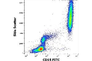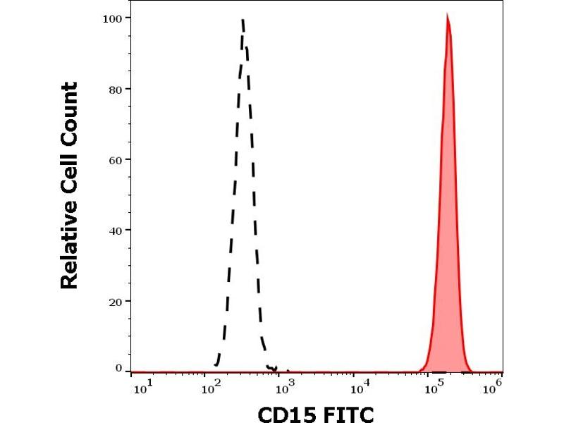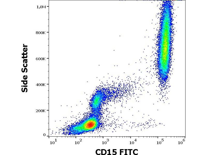 The antibody MEM-158 reacts with CD15, a cell membrane molecule 3-fucosyl-N-acetyllactosamine (3-FAL) strongly expressed on the surface of granulocytes, monocytes, macrophages, mast cells, it is also present on Langerhans cells and some myeloid precursors cells.