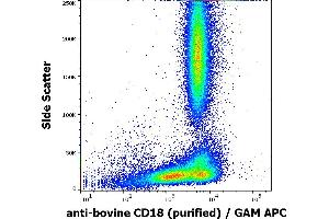 The antibody IVA35 reacts with an extracellular epitope of CD18 antigen (bovine), a 90-95 kDa type I transmembrane protein (integrin) expressed on all leukocytes.