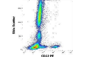 The antibody MEM-01 reacts with an extracellular epitope of CD22 (BL-CAM), a 130 kDa type I transmembrane glycoprotein (immunoglobulin superfamily) expressed in the cytoplasm of pro-B and pre-B lymphocytes, and on the surface of mature and activated B lymphocytes, it is lost on plasma cells, peripheral blood T lymphocytes, granulocytes and monocytes. The antibody MEM-01 cross-blocks the antibody OTH228 that recognizes uniquely epitope "E", it does not cross-block antibodies RFB-4, CLB22/1 and CLB-BLy1.