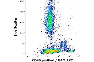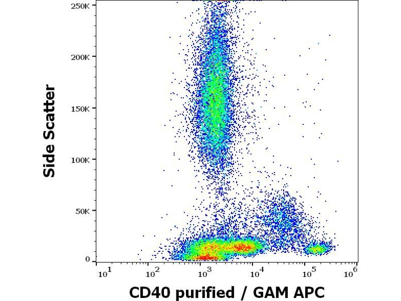 - CD40 Molecule,CD40 is a costimulatory molecule of the TNF receptor superfamily and is expressed on many cell types, such as B cells, monocytes/macrophages, dendritic cells, endothelial cells, fibroblasts or vascular smooth muscle cells. Interaction of CD40 and its ligand CD154 (CD40L) is required for the generation of antibody responses to T-dependent antigens as well as for the development of germinal centers and memory B cells. In monocytes/macrophages CD40 engagement induces production of pro-inflammatory cytokines and chemokines. CD40-CD154 interactions are also critical for development of CD4 T cell-dependent effector functions. CD40 links innate and adaptive immune responses to bacterial stimuli and serves as an important regulator affecting functions of other costimulatory molecules.,TNFRSF5, Bp50