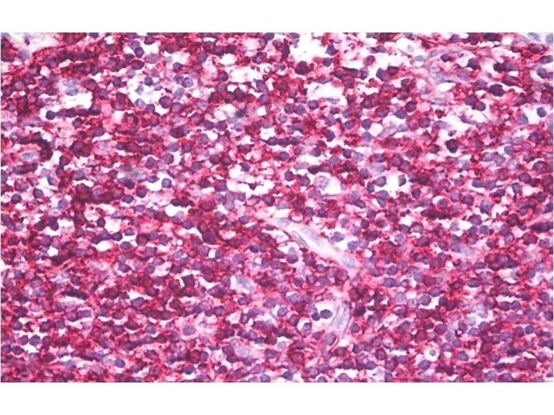 Immunohistochemistry (paraffin sections): Recommended dilution: 10 μg/mL, positive control: human tonsil.