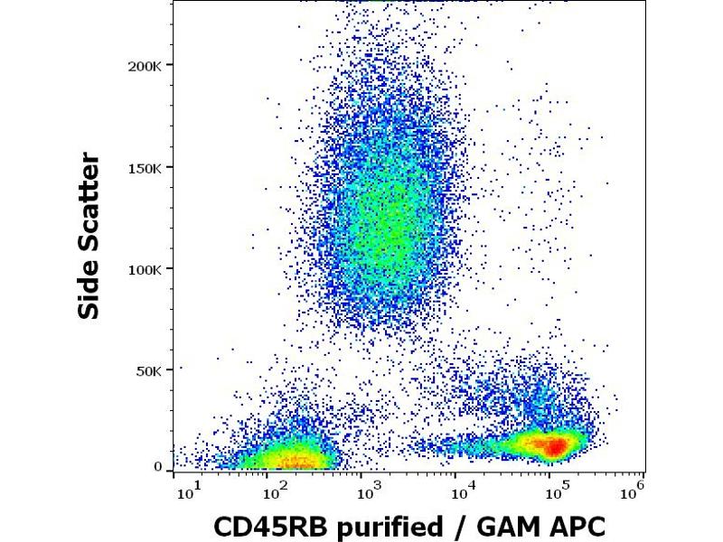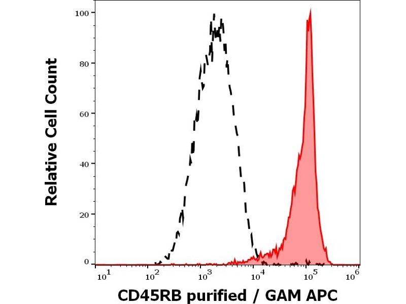 Flow cytometry: Recommended dilution: 0.5-4 μg/mL. The staining pattern of the MEM-143 shows prominent differences from other anti-CD45RB reagents including standard antibody MEM-55, mostly as a result of the recognition of differences in glycosylation.