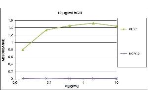 - The mouse monoclonal antibody GH-45 recognizes human growth hormone (hGH), a polypeptide hormone synthesized by acidophilic or somatotropic cells of the anterior pituitary gland. The GH-45 antibody reacts with affinity constant 3.8 x 1010 l /mol, it does not bind human prolactin or any other pituitary hormones.