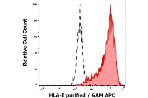 The antibody MEM-E/07 recognizes an extracellular epitope on native surface-expressed HLA-E, but not denaturated heavy chain of HLA-E. HLA-E belongs to the MHC Class I molecules (MHC Class Ib, nonclassical) and it is expressed on many types of the human cells. The published results revealed that the antibody cross-reacts with some classical MHC Class I molecules (MHC Class Ia): HLA-B7 (strongly), HLA-B8 (moderately), HLA-B27, -B44 (weakly).