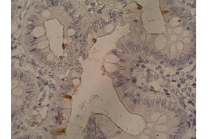 Immunohistochemistry (paraffin sections): Recommended dilution: 10 μg/mL, positive control: colorectal adenocarcinoma, heat mediated antigen retrieval (sodium citrate), mAb incubation 1 hour / RT, detection DAB.