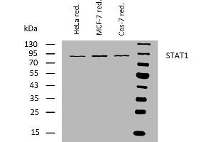 The antibody SM1 recognizes an epitope included within amino acids 721-733 of STAT1, a 91 kDa transcriptional factor involved in a variety of systems including antiviral responses and interferon alpha (IFN-alpha) and gamma (IFN-gamma) signal transduction.