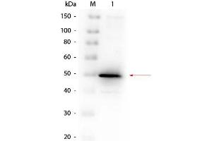 Application Note: Anti-Alkaline Phosphatase Antibody has been tested against 1.0 μg of Alkaline Phosphatase [E.coli] in a standard ELISA using Peroxidase conjugated Affinity Purified anti-Rabbit IgG [H&L] (Goat) code #611-1302 and (ABTS (2,2'-azino-bis-[3-ethylbenthiazoline-6-sulfonic acid]) code # ABTS-100 as a substrate for 30 minutes at room temperature. A working dilution of 1:25,000 to 1:125,000 of the reconstitution concentration is suggested for this product. A 1:10,000 dilution has been reported to be useful for the detection by immunoblot of an integral membrane protein from a gram-positive organism expressed as a LacZ/PhoA chimeric derivative in E.coli. The researcher should determine optimal titers for other applications.