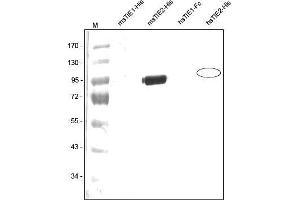 Recombinant Mouse soluble TIE-1 was fused with a 6x His-tag at the C-terminus. The soluble receptor protein consists of the full extracellular domain (Ser22-Ala748). Mouse sTIE-1 monomer has a calculated molecular mass of approximately 79,8 kDa. As a result of glycosylation, the recombinant protein migrates as an approximately 95 kDa protein in SDS-PAGE under reducing conditions. TIE-1 (tyrosine kinase with Ig and EGF homology domains 1) and TIE-2/Tek comprise a receptor tyrosine kinase (RTK) subfamily with unique structural characteristics: two immunoglobulin-like domains flanking three epidermal growth factor (EGF)-like domains and followed by three fibronectin type III-like repeats in the extracellular region and a split tyrosine kinase domain in the cytoplasmic region. These receptors are expressed primarily on endothelial and hematopoietic progenitor cells and play critical roles in angiogenesis, vasculogenesis and hematopoiesis.Synonyms: Angiopoietin-1 receptor, TIE-2, TIE2, Tunica interna endothelial cell kinase, Tyrosine-protein kinase receptor TEK, Tyrosine-protein kinase receptor TIE-2, p140 TEK