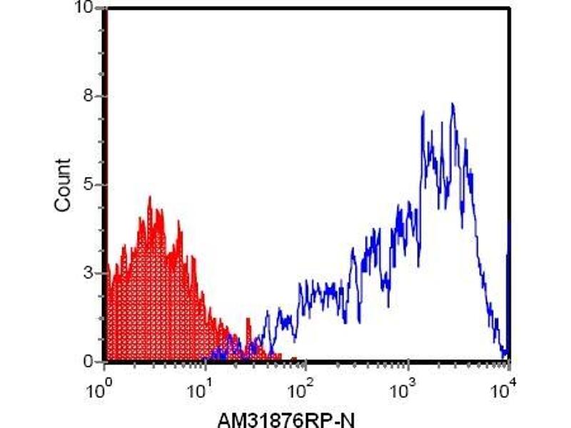 MHC Class I molecules play a central role in the immune system by presenting peptides derived from the endoplasmic reticulum lumen. MHC class I antigens are heterodimers consisting of one alpha chain (44 kDa) with beta2- microglobulin (11.5 kDa). The antigen is expressed by all somatic cells at varying levels. Lymphocytes are highly positive whereas fibroblasts or neurons show only a low level of antigen.Synonyms: H-2 class I histocompatibility antigen, H-2K(K), H2-K, H2-K1, K-K alpha chain