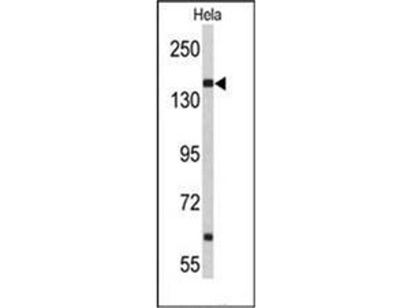 Nuclear pore complexes are extremely elaborate structures that mediate the regulated movement of macromolecules between the nucleus and cytoplasm. These complexes are composed of at least 100 different polypeptide subunits, many of which belong to the nucleoporin family. Nucleoporins are pore complex-specific glycoproteins characterized by cytoplasmically oriented O-linked N-acetylglucosamine residues and numerous repeats of the pentapeptide sequence XFXFG. This protein has three distinct domains: a N-terminal region within which a pore targeting domain has been identified, a central region containing multiple zinc finger motifs, and a C-terminal region containing multiple XFXFG repeats.Synonyms: 153 kDa nucleoporin, Nuclear pore complex protein Nup153, Nucleoporin Nup153