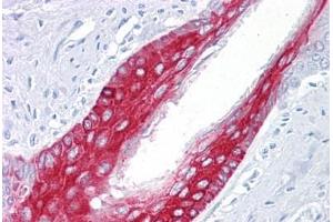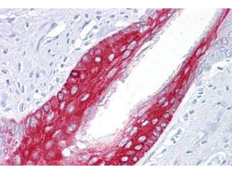 - Reacts with cytokeratin 17 in basal layers of pseudo-stratified and transitional epithelia.
