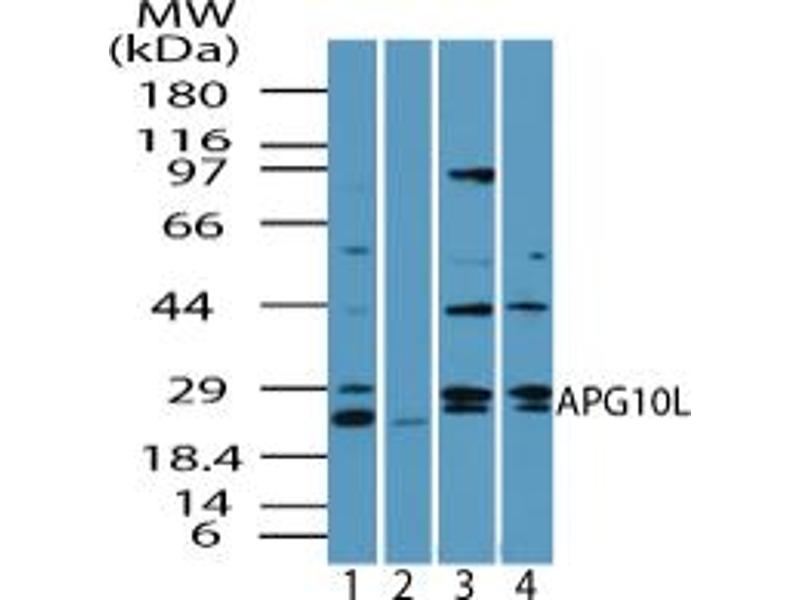 Synonyms: ATG10, Autophagy-related protein 10, Autophagy related 10, APG10-like, DKFZP586I0418, Pp12616, APG10, APG10L -