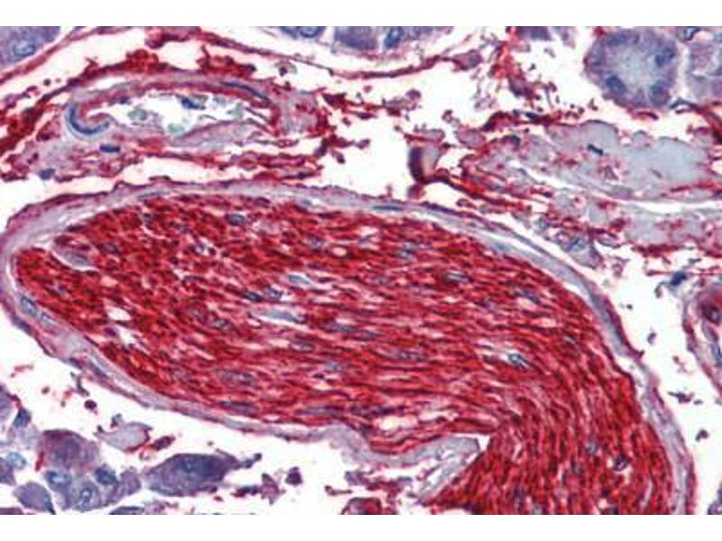 Usage: Immunohistochemistry: This antibody was validated for use in immunohistochemistry on a panel of 21 formalin-fixed, paraffin-embedded (FFPE) human tissues after heat induced antigen retrieval in pH 6.0 citrate buffer. After incubation with the primary antibody, slides were incubated with biotinylated secondary antibody, followed by alkaline phosphatase-streptavidin and chromogen. The stained slides were evaluated by a pathologist to confirm staining specificity. The optimal working concentration for this antibody was determined to be 10 μg/mL. -
