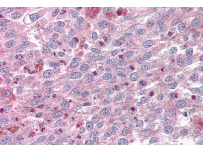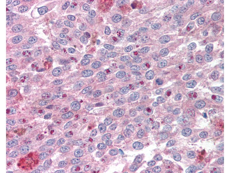Usage: Immunohistochemistry: This antibody was validated for use in immunohistochemistry on a panel of 21 formalin-fixed, paraffin-embedded (FFPE) human tissues after heat induced antigen retrieval in pH 6.0 citrate buffer. After incubation with the primary antibody, slides were incubated with biotinylated secondary antibody, followed by alkaline phosphatase-streptavidin and chromogen. The stained slides were evaluated by a pathologist to confirm staining specificity. The optimal working concentration for this antibody was determined to be 5 μg/mL. -
